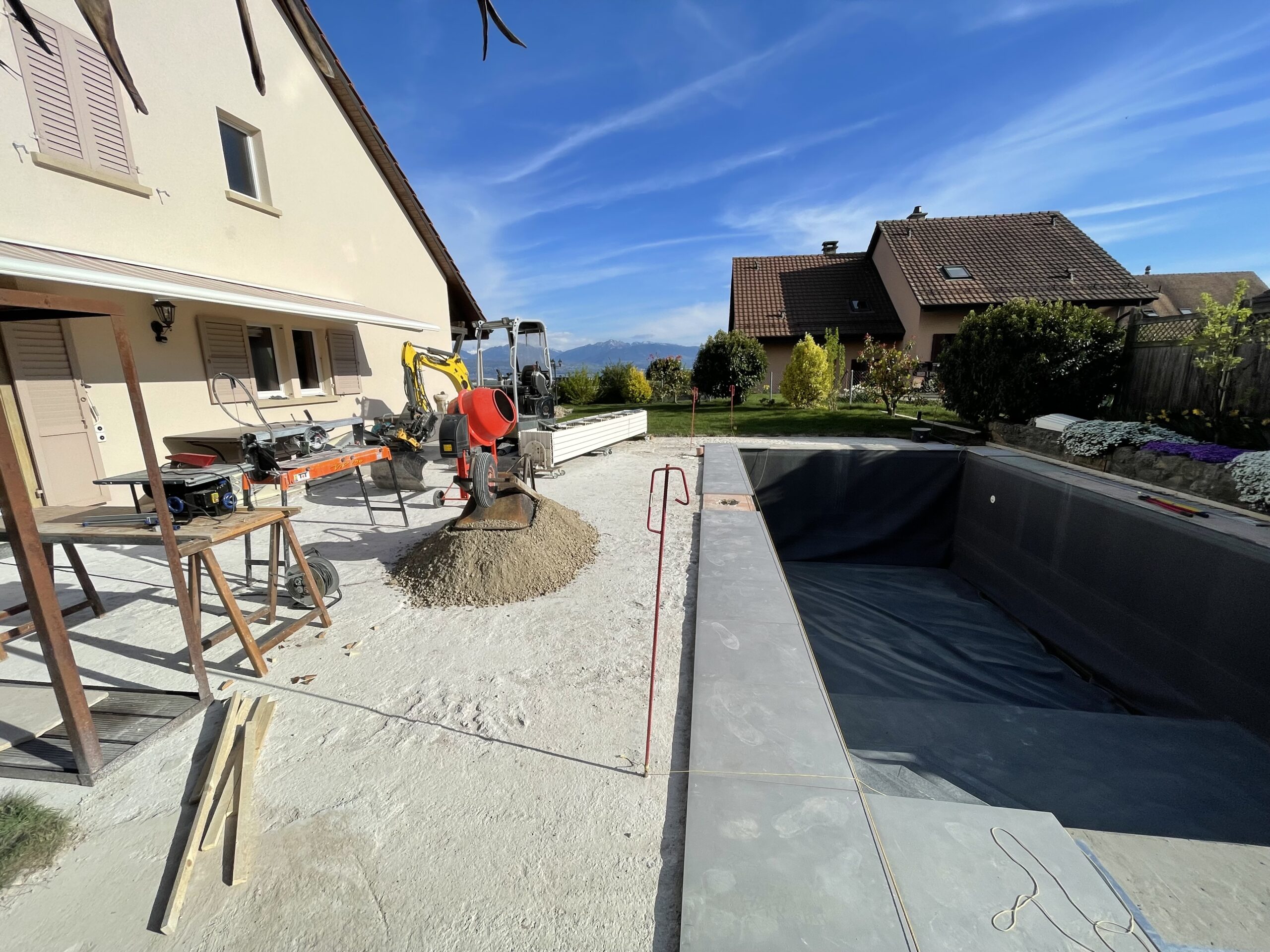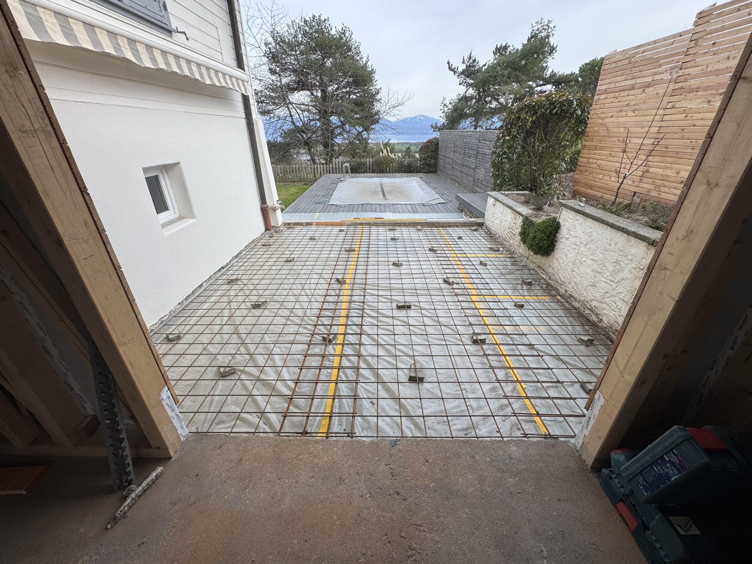Aménagement sous-sol, chapes, murs en béton, escaliers, habillages de piscines, bordures de jardin, vérandas.